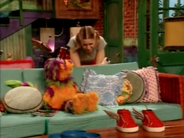 Suddenly, who should be at their door, but Captain Fabulous himself! He's come to retrieve his sneakers and parts with a message for Tingo: the shoes don't make the person go faster, it's the person. Tingo heads his advice as he challenges Niki to a race to the fridge. He finally wins and does a victory dance.