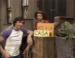 SCENE 2 | Oscar the Grouch has placed separate orders for signs from Maria and Luis. Luis delivers his sign to Oscar's trash can first; it reads "casa" which is Spanish for "house." Maria's sign arrives next, which just reads "Vete a la." She's confused why Oscar would order such a sign until they're placed together to read "Go home" in Spanish. Oscar: "what's the matter, can't you read Spanish? Go home!" |