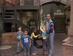 SCENE 6 | Luis and Gordon play basketball in the yard with the kids. Susan announces the sponsors. |