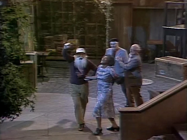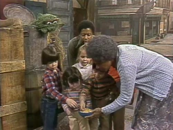 SCENE 1 | David and his grandmother Grace surprise Mr. Hooper at the store. Mr. Hooper has a problem - the person originally in charge of bringing sandwiches to the Day Care Center had to cancel and Mr. Hooper agreed to fill in. He doesn't think he can make all those sandwiches in the short amount of time and tells the others that the day care can't cancel the event and no other store around can help him. As David and Mr. Hooper converse about finding help, Grace reveals she's already made the sandwiches (and wrapped them) by herself. |