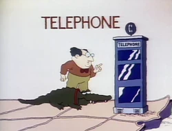 Cartoon | A man laughs out loud as an alligator uses the telephone to call his wife - then he eats the phone booth. (First: Episode 1113) |