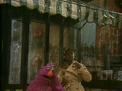 SCENE 3 | Telly Monster stands under the Hooper's Store awning, worried that the current rain shower will never stop. Olivia explains to him why we need rain, and Telly comes to realize how important it is. The rain eventually stops, but now Telly becomes worried that it will never rain again. |