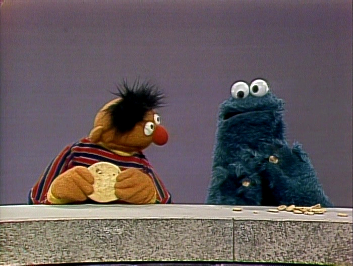 Muppets | Cookie Monster and Ernie: One or More Cookies — Ernie gives Cookie Monster a choice between two different bags of cookies. (First: Episode 1359) |