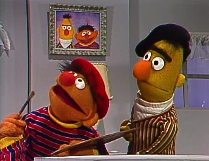 Muppets | Ernie and Bert: What to Paint — Bert wants to paint a bowl of oatmeal, while Ernie wants to paint a purple monster. (First: Episode 1446) |