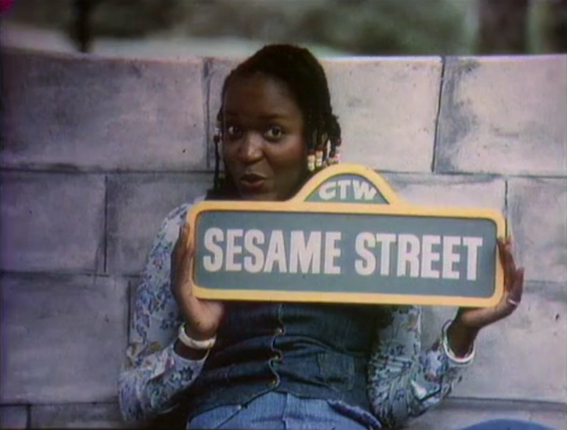 CLOSING SIGNS | Olivia holds the Sesame Street sign, while David holds the CTW sign. |
