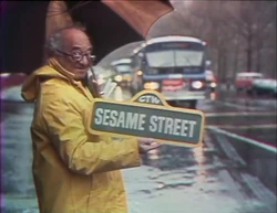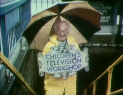 CLOSING SIGNS | Mr. Hooper holds both the Sesame Street and CTW signs. |