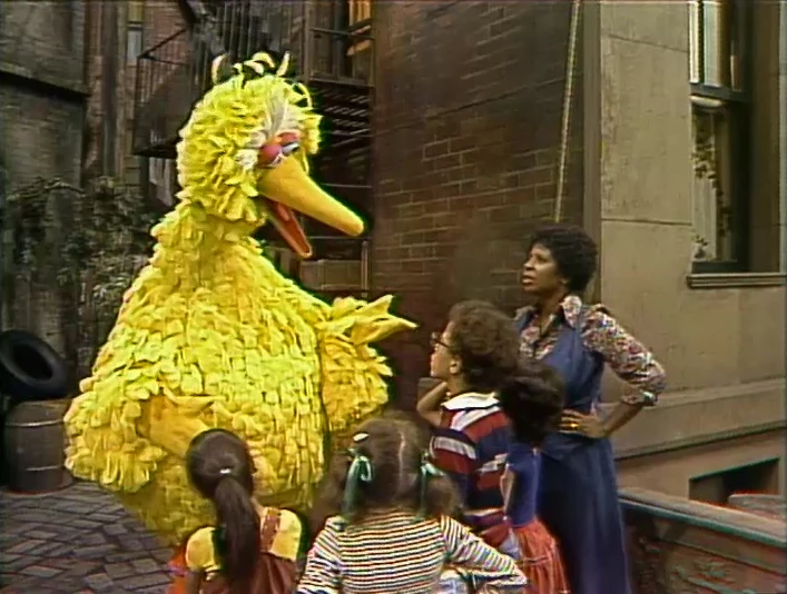 SCENE 2 | Susan, Big Bird and the kids play a guessing game where they pretend to be different animals. For his turn, Big Bird stands still and hums to himself - he's a humming bird! |