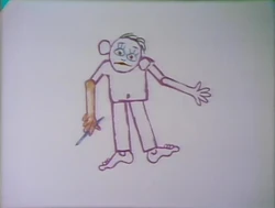 Animation | Children's voiceovers (in English and Spanish) dictate how to draw a male's body. (First: Episode 0528) |