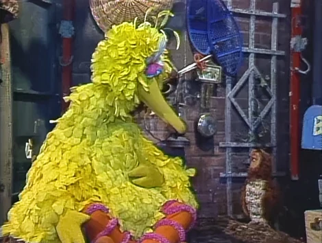 SCENE 3 | Maria finishes telling Big Bird a bedtime story and kisses him goodnight. As he closes his eyes, he's startled by a loud, screeching sound and comes face to face with Howlie, an owl. He explains that, unlike Big Bird, owls stay up all night, and they call to tell each other that it's time to fly. He then demonstrates his owl call, and Big Bird frantically tries to shush him while Maria and Bob shout for quiet. |