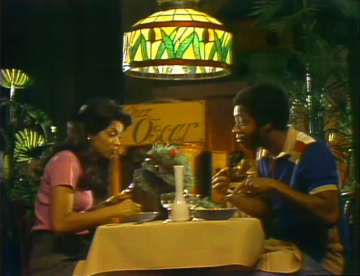 Insert | Oscar the Grouch caters to Maria and David at "Chez Oscar" in front of his trash can. (First: Episode 1215) |