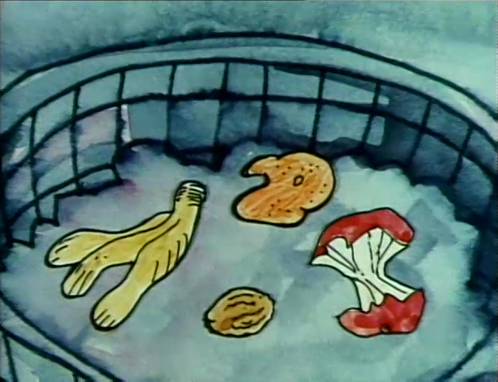 Cartoon | Fruta Manzana sings about keeping the place clean by throwing away fruit peels and apple cores. Artist: Irra Verbitsky |
