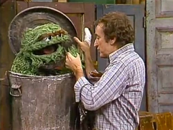 SCENE 5 | Oscar notices Bob's injured hand, but Bob stops him from any comments, believing since he's a Grouch he likes hearing about pain. Oscar clarifies that even Grouches don't like pain and feels sorry for Bob's condition. Bob is touched by Oscar's empathy, but Oscar orders Bob not to tell anyone about his feelings (threatening to put worms in his socks). While leaving, Oscar accidentally slams his can lid on his own hand and Bob starts to give him some helpful medical tips. |
