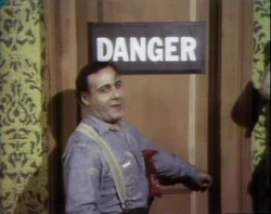 Film | Children in a movie theater tell a man on the screen not to open a door that says "DANGER" on it. He opens it, and there's an explosion. (First: Episode 0526) |