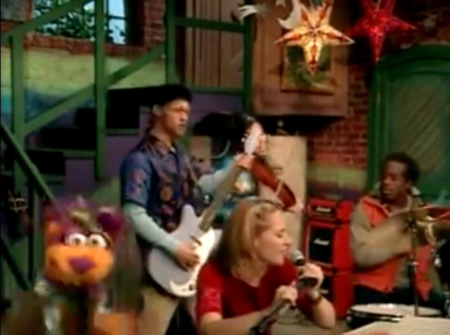 Tingo wails on Mike's drumset, but is told he isn't playing that either. Niki tells him he'll be playing the cymbals instead and gives him a pair. Tingo has a hard time balancing and falls over.