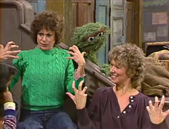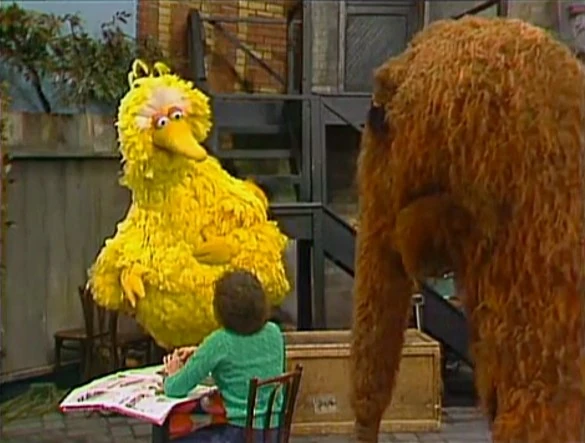 SCENE 1 | Mr. Snuffleupagus sees Linda reading the newspaper in the yard and decides to go speak to her. Since she's facing away from him, he receives no response when he tries making conversation. He fears that she doesn't like him, but Big Bird clarifies that she couldn't hear him because she's deaf. Big Bird goes over and gets her attention with some basic signs to demonstrate, but Snuffy runs off to learn sign language before Linda can see him; once again, she thinks that Big Bird has a great imagination. |