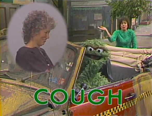 SCENE 6 | Linda now signs the letter C for the word "car" with Timi translating. Oscar provides a smoggy visual aid with the use of the Sloppy Jalopy, which helps teach the letter C in the word "cough." |