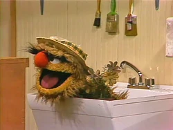 SCENE 2 | Osvaldo, el Gruñón has come for a surprise visit, bringing along his Santruce stinkweed, which has a foul smell. Oscar points out that his spare bedroom is being used by Buffy and Cody, so Osvaldo will have to sleep in his pet hippo's room. Maria and Luis try to settle the argument and give Oscar an idea. They return to the Fix-It Shop and find that Osvaldo is staying in their sink; it's directly connected to Oscar's guest wing by way of the sewer. |