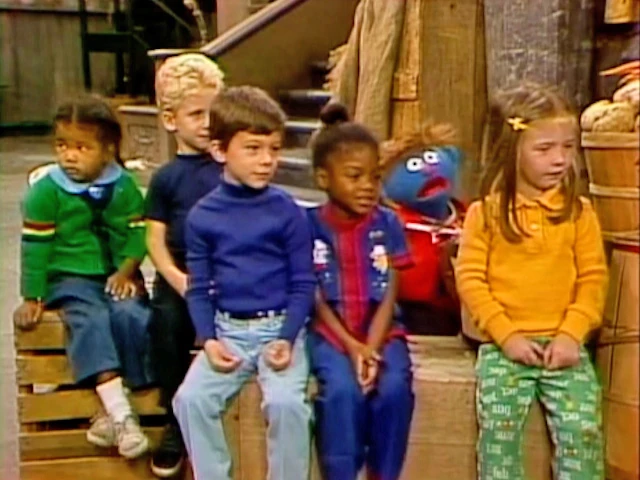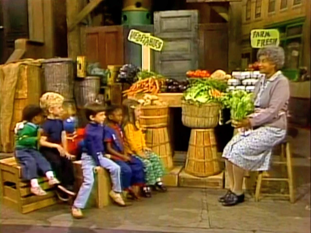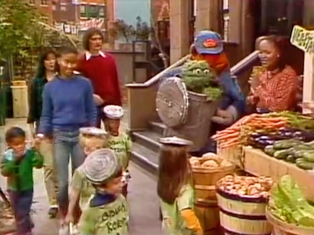 SCENE 3 | Oscar has painted a nice "Vegetables" sign for Grandma's stand, believing it will send a clear enough message to anyone looking for it (meaning he can be left alone). When Grandma goes to show Olivia, a young Muppet boy, Richard, happens upon the stand. He's able to recognize the "V" in the sign, but can't read the rest of the word. He knocks on Oscar's can to ask about it and Oscar angrily tells him what the sign says. Richard wonders how vegetables can make Oscar so upset. |
