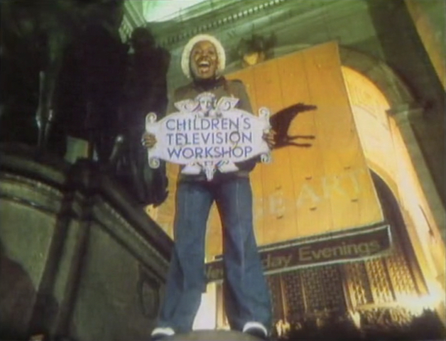 CLOSING SIGNS | Bob holds the Sesame Street sign, while Olivia holds the CTW sign. |
