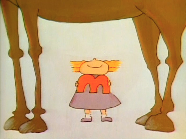 Cartoon | A top-hatted man tries to show a girl how many uses a box has, but she prefers kicking it. (First: Episode 0763) |