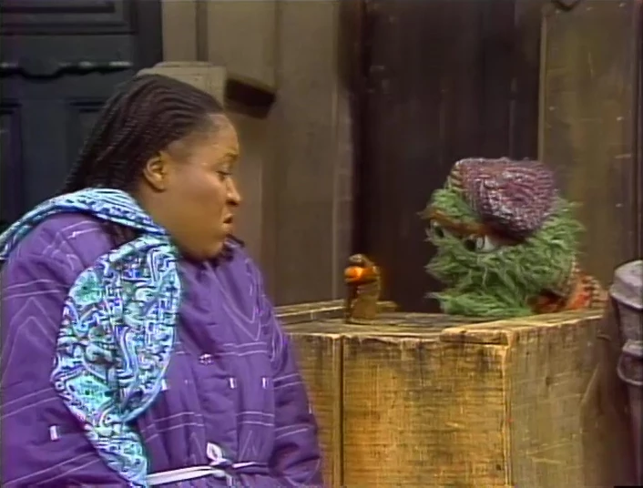 SCENE 2 | Oscar makes sure Slimey is bundled up and warm enough for his trek to Hooper's Store. However, as Olivia points out, Slimey has so much gear on, he's unable to move. Oscar tells Slimey his trip will just have to wait until summer. |
