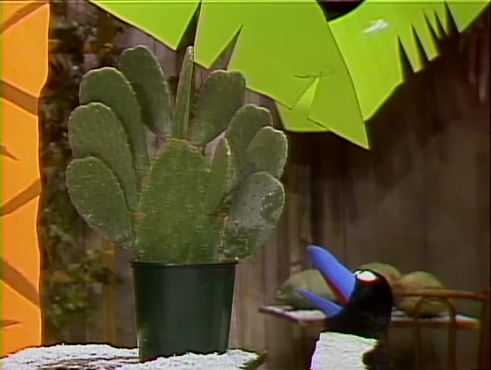 SCENE 3 | Susan sets out her cactus plant outside to get some sunlight while she goes grocery shopping. Zero, looking for Big Bird, tries communicating with it and finds its silence very rude. Big Bird explains that cacti, like plants, are alive but cannot speak; Zero breaks the disappointing news to Susan when she returns. |
