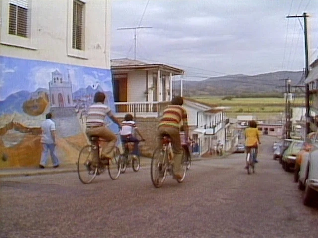 SCENE 3 cont'd | Linda, Bob, and the kids cycle through Puerto Rico, observing all the sights on the way to the shore. They stop to snack on sugarcane, bike past the lines of palm trees, and when they finally arrive they watch one of the locals sewing a fishing net. While watching, Linda reminds Bob why they're there, and the two head to the waters to swim. |