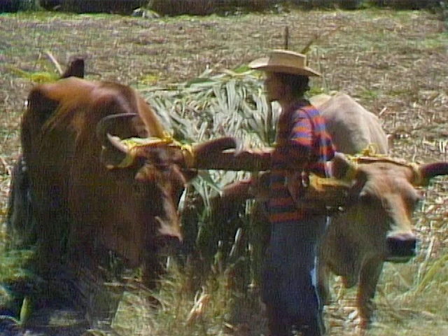 SCENE 2 | Big Bird and a child (in voice-over) observe some oxen pulling loads of sugarcane in the fields for the market. |