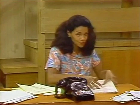 SCENE 3 | Maria rants about all the interruptions she's had so far. She hopes to avoid any future ones by pouring a bunch of change on the front desk so anyone needing to use the payphone won't need to bother her. As she heads back to work, Bob takes a call on the payphone, but needs a pencil to write down the message. Sure enough, Maria is interrupted again as Bob swipes the pencil from behind her ear. Maria pounds the trash can and whines, "I can't win!" |