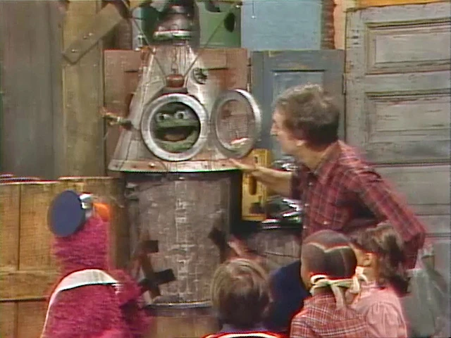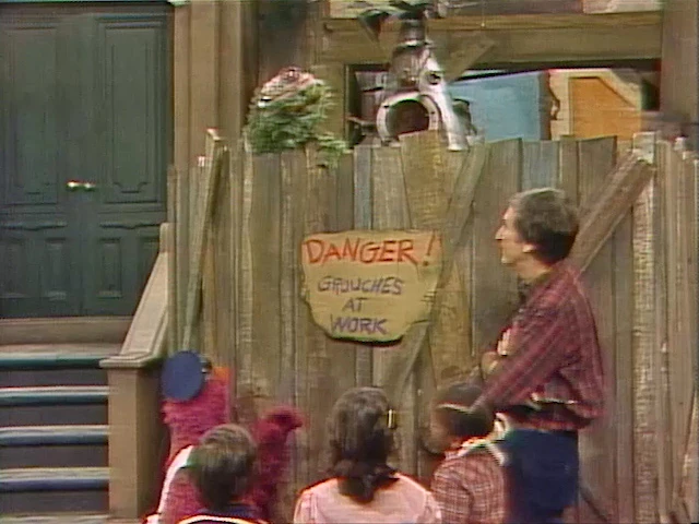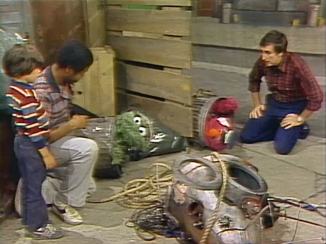SCENE 1 | Bob greets the viewer over loud noises happening behind a construction fence that's been erected in front of Oscar's trash can. He approaches to find Telly standing watch, who hasn't been told what's going on. Bob summons Oscar who appears from behind the fence and says he's building something that will take him far away. After asking everyone to countdown from 10, he reveals he's building a rocketship: the USS Blecch. Telly asks if he can come with him, but Oscar says he's one of the biggest reasons he's leaving. |
