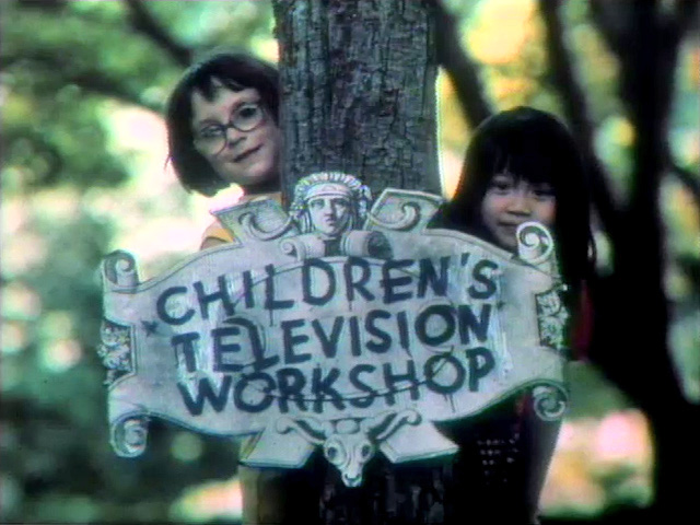 CLOSING SIGNS | Kermit and a girl hold the Sesame Street sign, while two kids hold the CTW sign. |