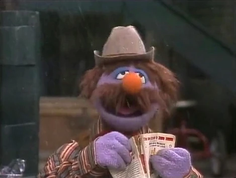 Muppets | Harvey Kneeslapper is bouncing on a pogo stick. He asks a man if he'd like to try it, and the man replies, "I'd love to!" Harvey then slaps a big number 2 on the man's chest. (First: Episode 0417) |