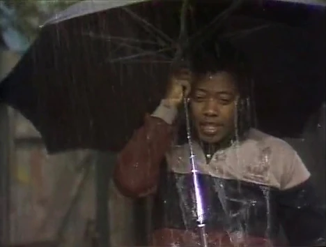 SCENE 1 | On a rainy day, Maria spots Forgetful Jones holding an open umbrella upside down. She shows him how to use it properly, and when she leaves, he immediately forgets again. David needs an umbrella to make deliveries for Hooper's Store so Forgetful gives him his, but David gets soaking wet from all the water that accumulated in the umbrella. |