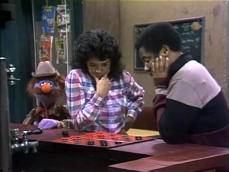 CLOSING SIGNS | Bob holds the Sesame Street sign, while Mr. Hooper holds the CTW sign. |