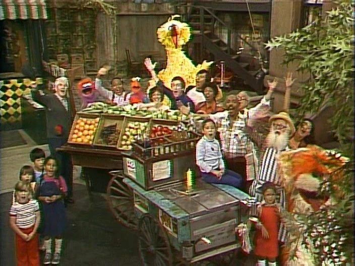 SCENE 1 | Big Bird finds no one but him is around on the street to welcome the viewer. In song, he counts himself and soon finds he's joined by 19 more friends, making a total of 20 to say hello! |