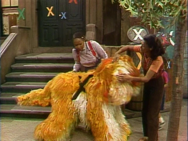 SCENE 3 | Olivia and Maria find there are Xs all over Sesame Street, on the doors, walls and even Barkley! The culprit turns out to be none other than Cowboy X, who assumes the street residents will make him stop just like the folks back at the gulch. Luis and Gordon tell him he's quite welcome, as they'll be discussing the letter X today. Cowboy X is unaware that X is a letter of the "al-fee-bet," having never learned to read or write. |