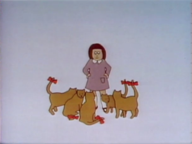 Cartoon | A girl counts her 5 cats using ribbon to keep track. (First: Episode 1001) |