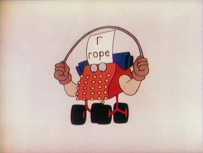 Cartoon | Men in boxes sound out the word RUN. (First: Episode 0369) |