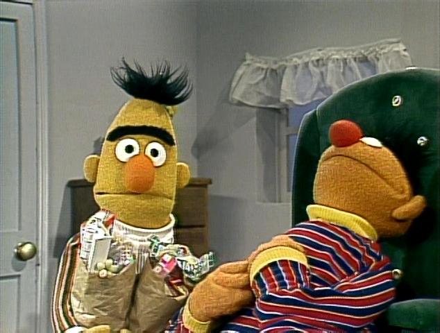 Muppets | Ernie and Bert: Doing Nothing — Bert asks Ernie to help him carry his heavy groceries. (First: Episode 1449) |