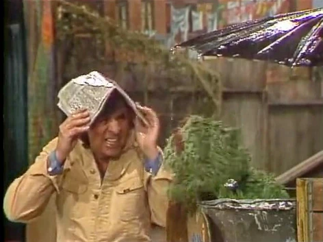 SCENE 1 | On a rainy day, Oscar reports for WORM-TV to ask some passerby their three questions of the day, which will earn them a grand prize. Oscar makes Luis stand out in the rain as he asks the three questions, all having to do with what happens when someone stands in the rain too long. Luis gets them all right and Oscar hands him something he needs - a towel (which also happens to be filthy). |