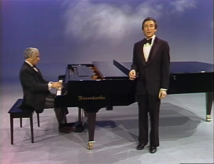 Cast / Celebrity | Bob tries to sing "Es lebt' eine Vilja, ein WaldmΓ€gdelein" from Die lustige Witwe, accompanied by Victor Borge. (First: Episode 1175) |