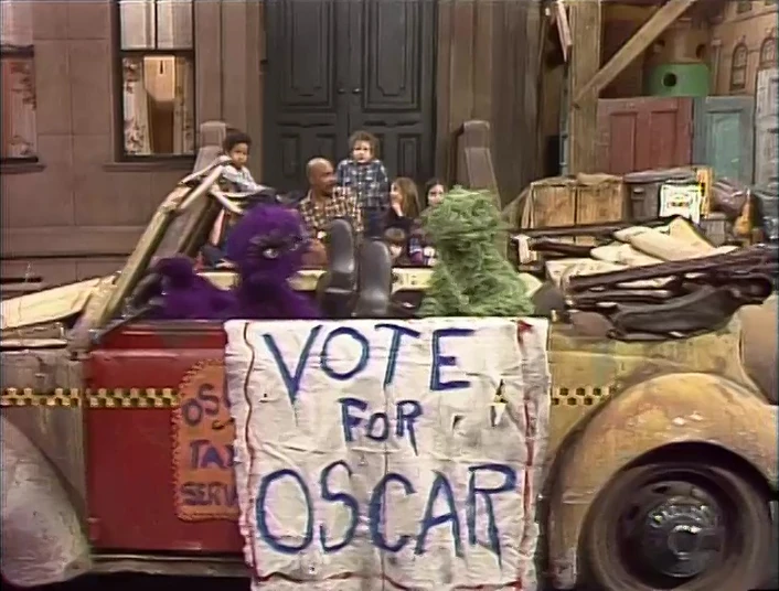 SCENE 4 | Oscar drives the Sloppy Jalopy down the block, calling for voters on his PA system. Gordon asks the kids what things might be like around the city if Oscar were elected mayor. He then takes a quick poll of who would vote for him; none of the kids raise their hands. |