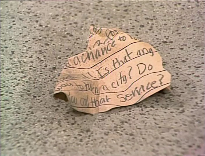 SCENE 1 | Oscar pens a letter regarding the city trash pick-up, as the trash was collected before he had his chance to rummage through and collect anything. He isn't sure who it should be addressed to, when Gordon states that the mayor is the one in charge of the whole city. "Who put him in charge?!" Oscar asks before learning about the election process. He decides right then and there to run for mayor of New York City, and promises a city even dirtier than before. He kicks off his campaign by tossing his crumpled letter on the sidewalk to start the littering process. |