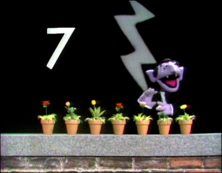 Muppets | The Count counts seven flowers, and then explains that he loves to count flowers because then he gets to count sneezes. (First: Episode 0433) |
