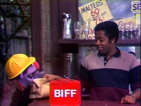 SCENE 5 | Biff comes into Hooper's Store to order some sandwiches for himself, Sully, and some folks back at the factory. Biff gets the urge to turn this into a game of "Three of These Things." He's very impressed that Ailene can give two different answers as to which sandwich doesn't belong. He goes off to tell his coworkers about it, neglecting to take the sandwiches with him. |