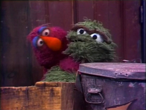 SCENE 4 | Oscar settles in for some peace and quiet, when the officer's police car pulls on to the street. She chides Oscar for nearly putting Telly in danger like that; Oscar claims this is something a Grouch would never do intentionally. He apologizes and the officer recommends Telly stay near his friend from now on. Telly gets up nice and close to Oscar. |