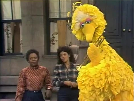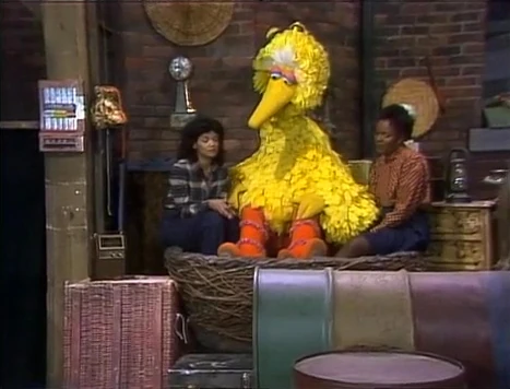 SCENE 2 | As Maria and Olivia practice their doo-wop singing, Big Bird tries to play the trumpet, but it sounds awful. The women tell him that he won't be good at it right away; he'll need to practice. Big Bird tries the same with a harmonica, with similar results. The grown-ups then hear beautiful violin music coming from Big Bird's nest, which is just his radio. |