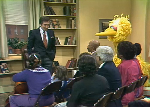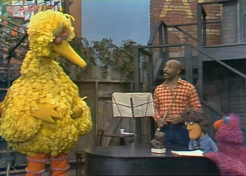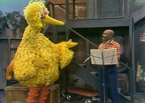 SCENE 1 | Big Bird greets the viewer as he prepares for his morning exercises in the yard. Nearby, he sees Gordon setting up to practice his flute. Big Bird remembers today is the day of a recital Gordon is playing in, and he naturally feels nervous about playing in front of people for the first time. Big Bird helps Gordon briefly take his mind off the recital by inviting him to exercise along with his tape-recorded routine. |