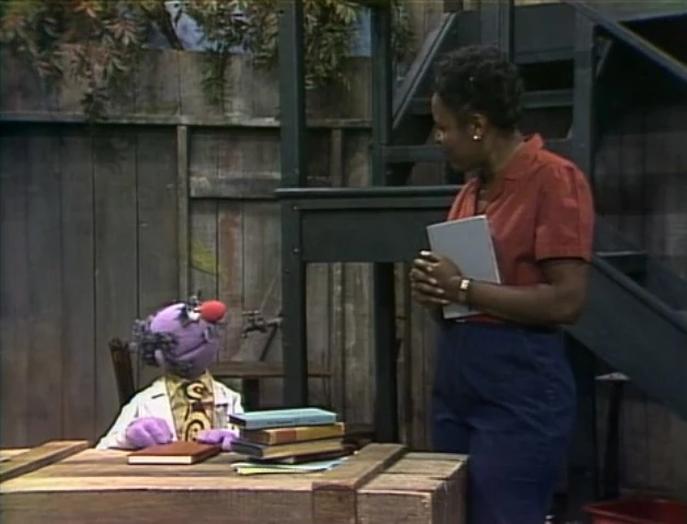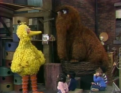 SCENE 4 | Maria spots an empty box by Oscar's trash can. She asks him if she can take it to store some tools in, but Oscar isn't through with it yet - he has to read it. He claims he and his fellow Grouches love to read trash, and he reads the various printings on the box before moving on to read a soup can. Oscar then proceeds to read the label of an old sweater; Maria recognizes it as hers which she had to throw out after it shrunk in the wash, only now noticing the "Do Not Machine Wash" tag, which upsets her. Olivia drops by to spot them both reading trash and tries to pull away a disappointed Maria for some hot chocolate at Hooper's Store. Snuffy reads the sponsors. |