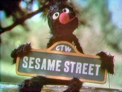 CLOSING SIGNS | Grover holds the Sesame Street sign, while the Count holds the CTW sign at the end. |